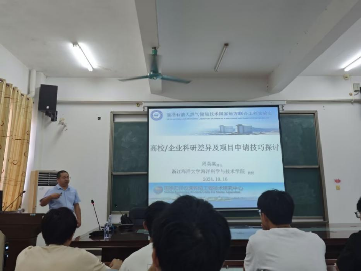 周英棠教授介绍了产业与学术界的科研思路的差异和不同,并举例他在高通量多元检测技术,光热材料在肿瘤治疗,光热材料在海水淡化及水处理等方面科研思路和主导思想。周英棠教授还向与会师生们介绍了其团队围绕舟山地域进行海水淡化、浙江纺织污染非常规水处理、光热肿瘤治疗一体的研究结果和取得的成效,并科普了来自海洋新型材料在未来的应用前景。此外,就如何申报国家级、省级各类项目,周英棠教授也分享自身宝贵的经验。