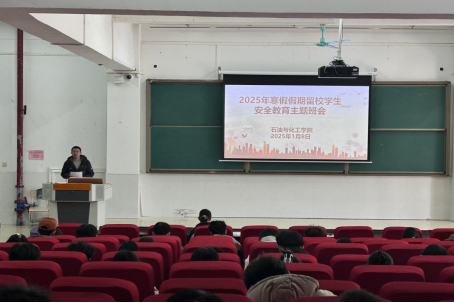会上,申老师首先传达了学校关于寒假留校学生管理的相关文件,重点强调了留校纪律要求,要求全体留校学生必须严格遵守按时归寝、外出报备等管理规定,严禁私自校外住宿或深夜不归。李老师结合化工专业特点和校园安全实际,从人身财产安全、交通安全、饮食卫生、防范电信诈骗、宿舍用电安全等方面进行了详细讲解,特别提醒学生警惕各类以勤工助学为名的诈骗活动。
