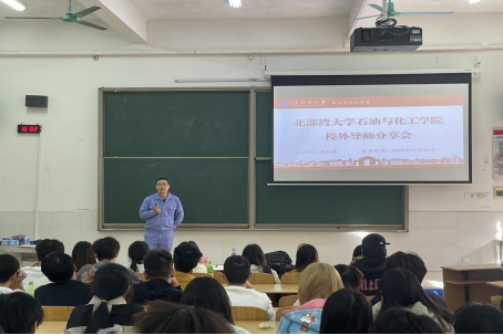 分享会上,李志雄校友结合自身在北部湾大学的求学经历和毕业后的工作实践,回顾在校期间的学习生活与成长点滴。李志雄校友分享如何高效学习专业知识、积极参与实践锻炼的经验,鼓励学弟学妹们珍惜大学时光,夯实专业基础,培养综合能力。随后,李志雄校友聚焦石化行业,详细分析当前的就业形势、发展趋势以及人才需求特点,并介绍行业内的主要工作内容、技术前沿与发展机遇,为同学们勾勒出清晰的行业图景。