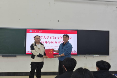 2025年12月19日下午,我院在11-105教室成功举办优秀校友导师经验分享会。本次分享会特邀学院2024届毕业生,现任广西华谊氯碱化工有限公司助理工程师覃传沛校友主讲,为化工专升本251班带来了一场《从校园到职场:成长分享与职业规划》的专题分享。