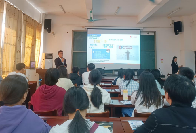 宣讲会上,公司代表讲解了公司的基本情况、业务领域、发展前景以及本次招聘的岗位和要求,重点介绍了本次招聘的多个岗位,包括燃气工程专业的技术型人才等。公司提供了具有竞争力的福利,五险一金、定期体检、提供食宿、带薪年假、高温补贴、年度调薪等。