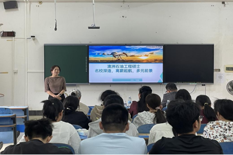 2025年10月21日下午,我院特邀资深留学咨询与签证服务专家吴海斌老师和冯国媚老师,开展“澳洲石油工程本升硕百万年薪启航”主题专场宣讲会。本次活动由冯国媚老师主讲,吸引我院大二、大三众多学子踊跃参与,成为我院深化国际教育合作的重要里程碑。