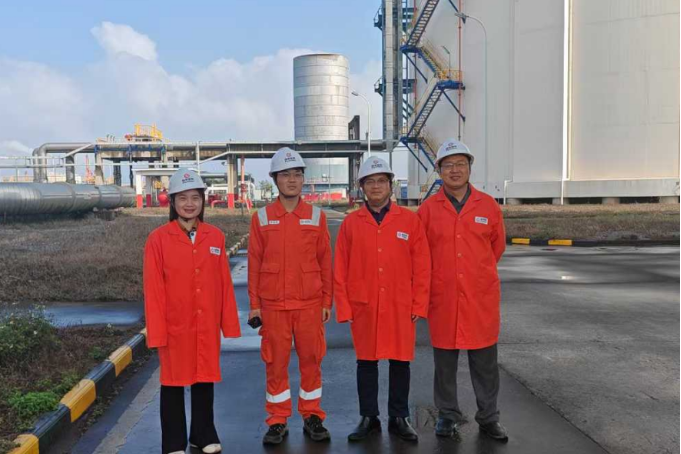 我院教师与储运22届毕业学生在工作现场(照片提供:国家管网防城港LNG)
