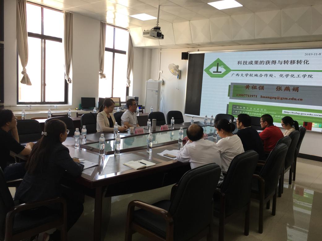 2019年11月8日,广西大学校地合作处处长、广西特聘专家、博士生导师黄祖强教授,广西大学硕士生导师张燕娟副教授应邀到石油与化工学院进行学术讲座交流,学术报告在6-503举行,由石油与化工学院尹艳镇院长主持,教务处王玉军副处长、石油与化工学院张艳军副院长、蔡平雄教授、梁兴唐、刘子杰、姚峰、食品学院张自然等教师以及石油与化工学院学生共50多人到场认真聆听。