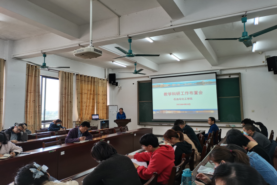 范勐院长助理对本学期在化工专业评估、能化专业工程认证、教改项目和课程思政项目申报、试卷装订、2018级毕业论文情况等方面的工作向全体教师进行了介绍,对后续的毕业论文工作推进、教案编写、能化专业工程认证等工作进行了布置。