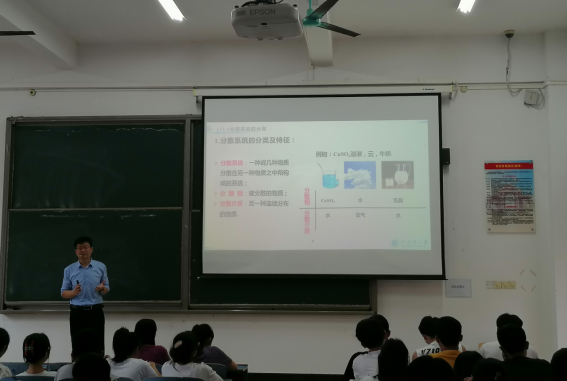 5月11日上午,《物理化学》课程教学团队成员、建筑工程学院党委书记史忠丰教授在12栋教学楼106教室为石油与化工学院高材本201、202班学生讲授《物理化学》课程思政公开课,讲授内容为胶体化学中溶胶的光化学性质和动力学性质。