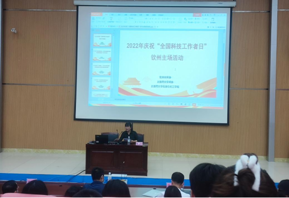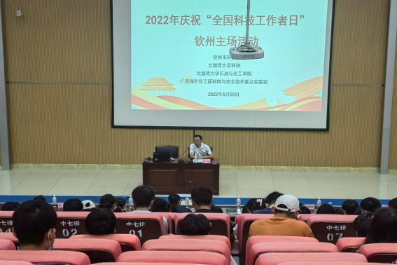 5月20日下午,由钦州市科学技术协会、北部湾大学科学技术协会主办,北部湾大学石油与化工学院、广西绿色化工新材料与安全技术重点实验室共同承办的2022年庆祝“全国科技工作者日”钦州主场活动暨2022年“弘扬科学家精神 喜迎党的二十大——广西优秀科技工作者宣讲报告会”钦州专场会在北部湾大学3号楼101报告厅举行。
