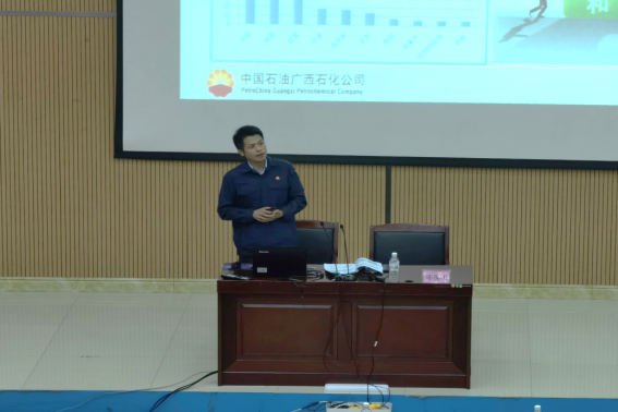 陈保华处长为大家做题为《始于初心 臻于匠心》的宣讲报告。陈处长结合自身工作和科研经历,从两个方面进行了宣讲:一是中国石油广西石化公司如何 “做新发展理念的践行者,做绿色低碳发展的带头人,做智能转型发展的排头兵,做创新驱动发展的领头雁”;二是石化科技工作者们如何扎根工作岗位,面向世界科技前沿、面向国家重大需求,在绿色化工领域以创新发展为核心,追求卓越,勇于攻坚克难,永葆石化人的工匠精神。陈处长最后勉励石化学院的同学们勇于创新、顽强拼搏,尽己所能,为地方经济高质量发展作出新贡献。