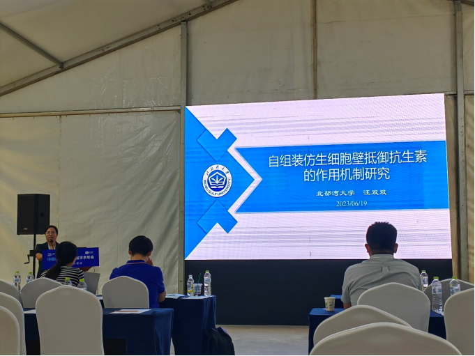 会上汪双双博士做了题目为《自组装仿生细胞壁抵御抗生素的作用机制研究》的汇报,介绍了水产养殖业中抗生素的滥用情况及对水产养殖中的添加剂益生菌和酵母菌的危害。汪双双课题组通过自组装技术在酵母细胞表面包覆上仿生细胞壁,从而达到帮助其抵御抗生素、提高细胞存活率的效果;同时,也采用理论模拟技术考察了仿生细胞壁抵御抗生素的作用机制。通过此次会议,参会师生积极听取与会报告,了解学科前沿研究进展,收获颇丰。