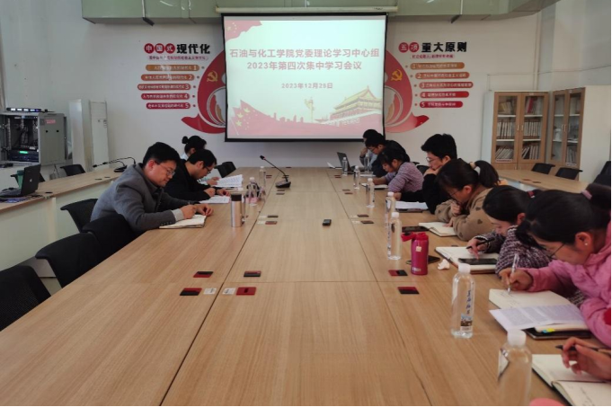 12月28日下午,尹艳镇副校长巡听旁听石油与化工学院党委理论学习中心组第四次集中学习会。会议在6-308会议室举行,学院党委书记黄瑜主持会议,学院党委理论学习中心组成员参会。