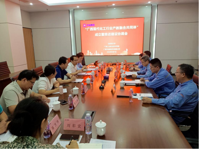 座谈会上,三方就广西现代化工行业产教融合共同体成立大会筹备工作等交换意见。