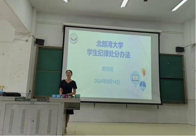 辅导员陈悦悦向新生讲解宿舍管理和违纪处分问题