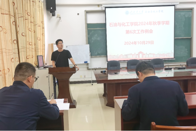 10月29日下午,我院在6-503会议室召开2024年秋季学期第6次全体教职工例会。会议由我院党委副书记粟建勇主持,学院全体教师参会。