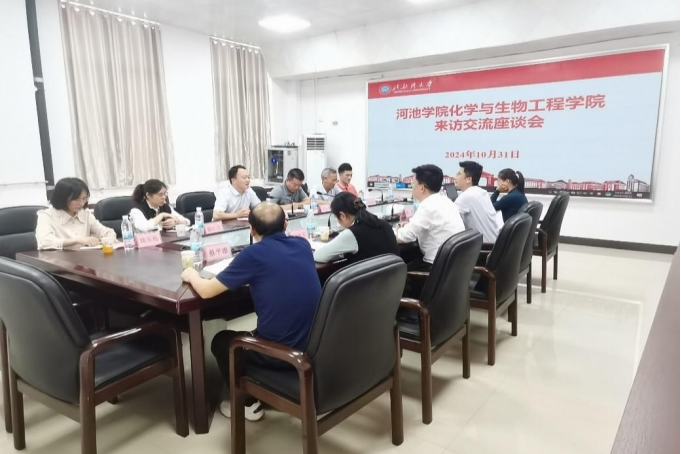 10月31日,河池学院化学与生物工程学院院长李晓东一行到我院调研交流。学院院长史忠丰,副院长张艳军、陈波,党政办公室、化学工程与工艺教研室、能源化学工程教研室负责人陪同调研并座谈交流。