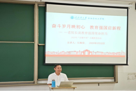 2025年5月22日下午,我院在11-211教室举办“奋斗岁月映初心 教育强国启新程”主题教育讲座,特邀石油与化工学院原院长石海信教授分享教育报国实践感悟。活动现场,老院长以数十载从教经历为主线,通过真实工作片段再现教育工作者砥砺奋进的动人篇章。