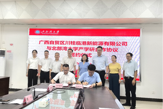 2025年7月7日下午,北部湾大学与广西自贸区川桂临港新能源有限公司产学研合作协议签约仪式在学校6号楼306会议室举行。双方将在新能源技术研发、人才培养、成果转化等领域开展深度合作,共同服务国家“双碳”战略和区域绿色经济发展。北部湾大学党委常委、副校长陈丹,川桂临港新能源有限公司董事长何熊出席仪式并见证签约。仪式由学校科技处处长潘宇晨主持。