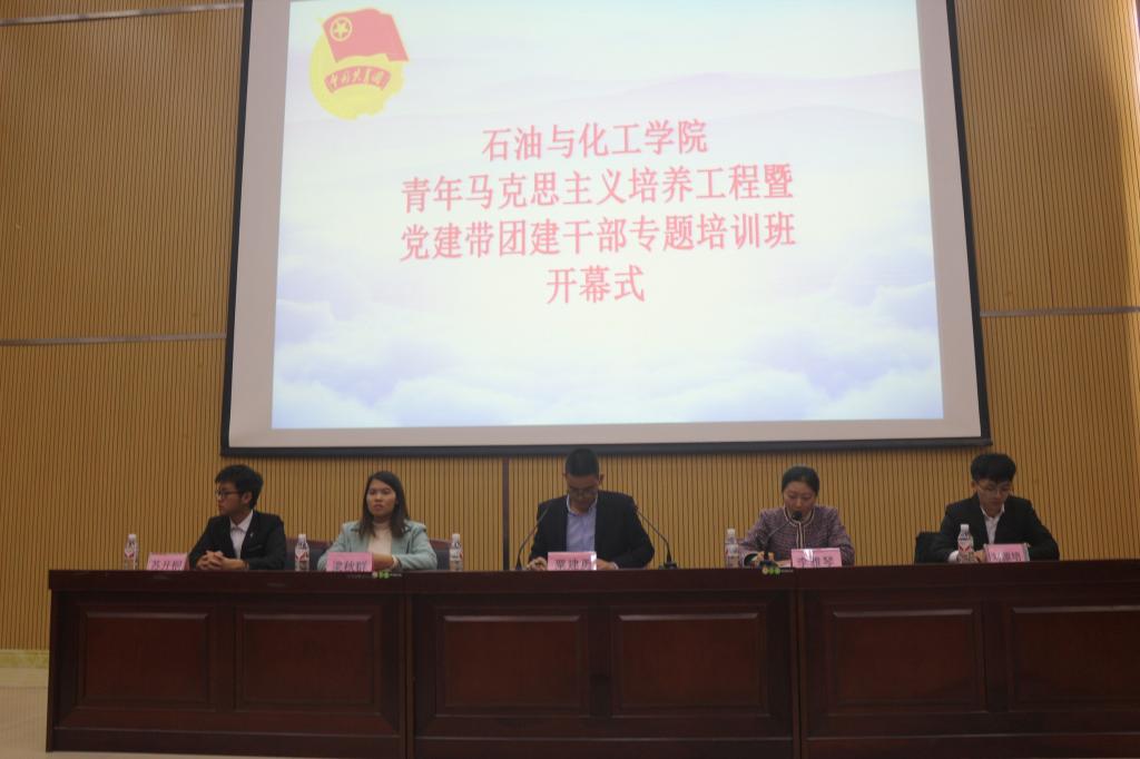 12月6日晚,我院在3号教学楼101会议室举行“石油与化工学院青年马克思主义培养工程暨党建带团建干部专题培训班”开班仪式,学院党委副书记粟建勇,学工办主任、分团委书记李雅琴,思想政治辅导员梁秋群出席开班仪式,石化学院青年马克思主义培养工程培训班全体学员参加。