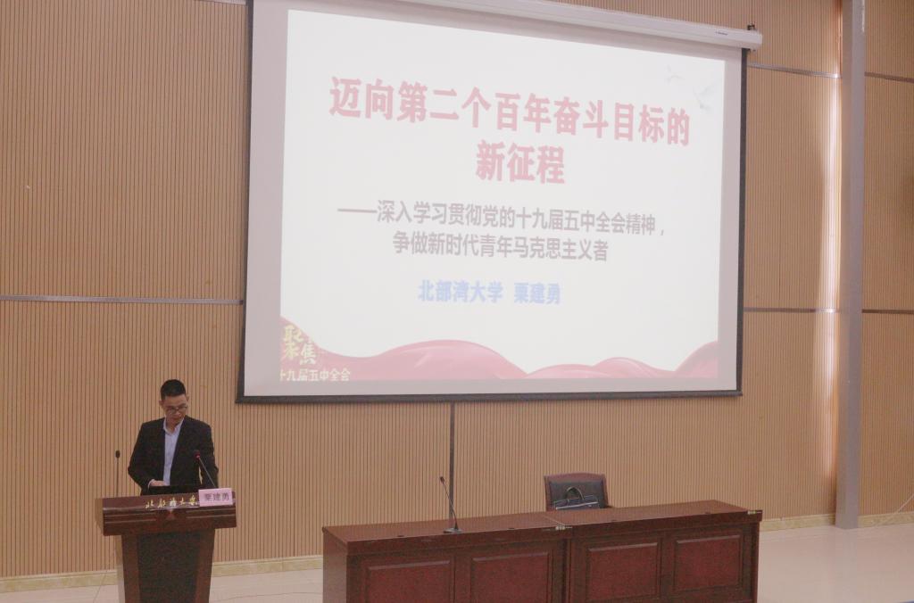 开班仪式结束后,粟建勇副书记作题为“深入学习贯彻党的十九届五中全会精神,争做新时代的马克思主义者”的“开班第一讲”。粟副书记从十九届五中全会的重大意义、全会决胜全面建成小康社会取得的决定性成就、规划的主要目标、实现宏伟目标必须坚持党的全面领导等方面进行了精彩的阐述。最后就青年学生如何成为新时代青年马克思主义者与全体学员进行深入交流。勉励全体学员认真学习马克思主义经典著作,读原著学原文悟原理,学以致用,努力成为新时代青年马克思主义者,为实现中华民族伟大复兴,实现共产主义而努力奋斗。