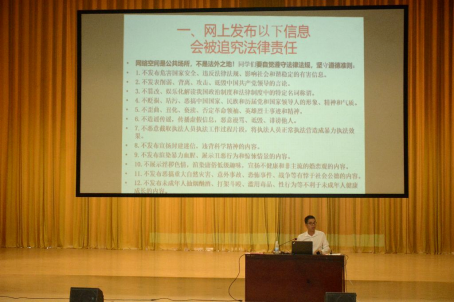 11月19日下午,我院在学校礼堂召开道德与法治讲堂系列活动之网络文明教育会。本次会议由学院党委副书记粟建勇主讲,学院全体学生约1000人参会。