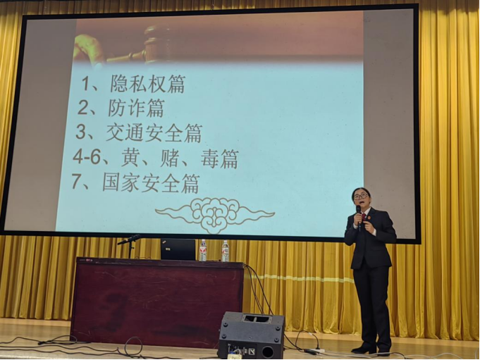 宁法官从隐私篇、防骗篇、交通篇、涉黄涉赌涉毒篇、国家安全篇依次讲述,用丰富详实的案例,分析大学生学习、生活和社交中可能触及到的道德和法律风险点。二是对个人隐私安全问题进行了法理阐释,教育师生要学法、懂法、用法。三是防范电信诈骗,从常见诈骗类型,讲解犯罪行为的构成要件、法律后果以及预防方法,提醒同学们切勿因一时贪念或疏忽大意而触犯法律红线。之后,对涉及到大学生交通安全,全方位为大学生的行为准则提供了清晰的法律参照。最后,通过违反国家安全和网络安全的案例,引导同学们筑牢国家安全、网络安全意识,自觉构建风清气正的网络空间。